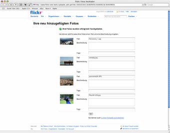 Für Flickr Uploadr braucht man ein kostenloses Benutzerkonto bei Flickr. Um Fotos auf die eigene Seite zu laden, zieht man die gewünschten Bilder per Drag&Drop auf die Oberfläche des Programms. Anschließend legt man die Bildgröße fest, vergibt Tags und lädt die Aufnahmen ins Internet. Per Klick kann man sich die neuen Bilder auf der Flickr-Seite anschauen und bei Bedarf weiterbearbeiten.